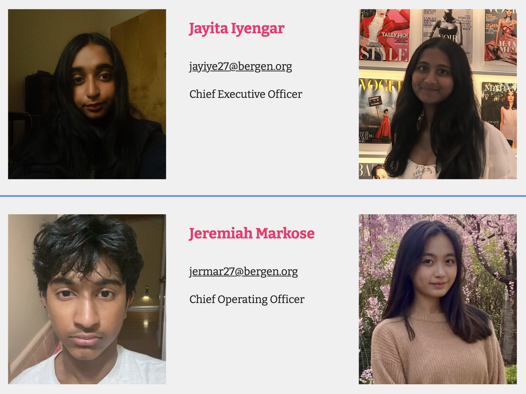 We are based in Hackensack, New Jersey, at Bergen County Academies.