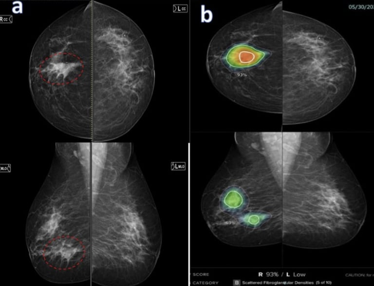 “There are different ways that we try to address this and one of them is integrating something called ‘explainable AI.’ This tells us how the AI system came up with the interpretation that it did. But you're right, it is very hard for a breast imager to believe ai when they don't know how it came up with that interpretation. If there is a density on the mammogram, and that AI flags this density as suspicious, a radiologist may say it does not look suspicious and dismiss the finding. However, if the radiologist knew that AI came up with this density as being suspicious because there is an irregular margin and it points to where that margin is, the radiologist is more likely to believe and accept this interpretation.”